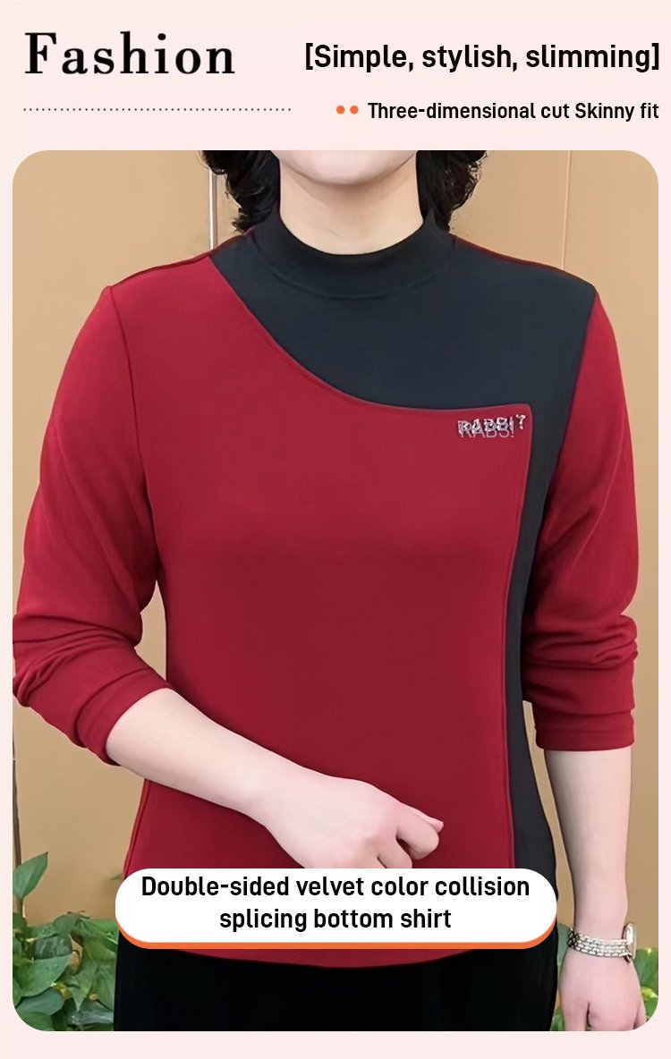 Double-faced velvet contrast color stitching bottoming shirt